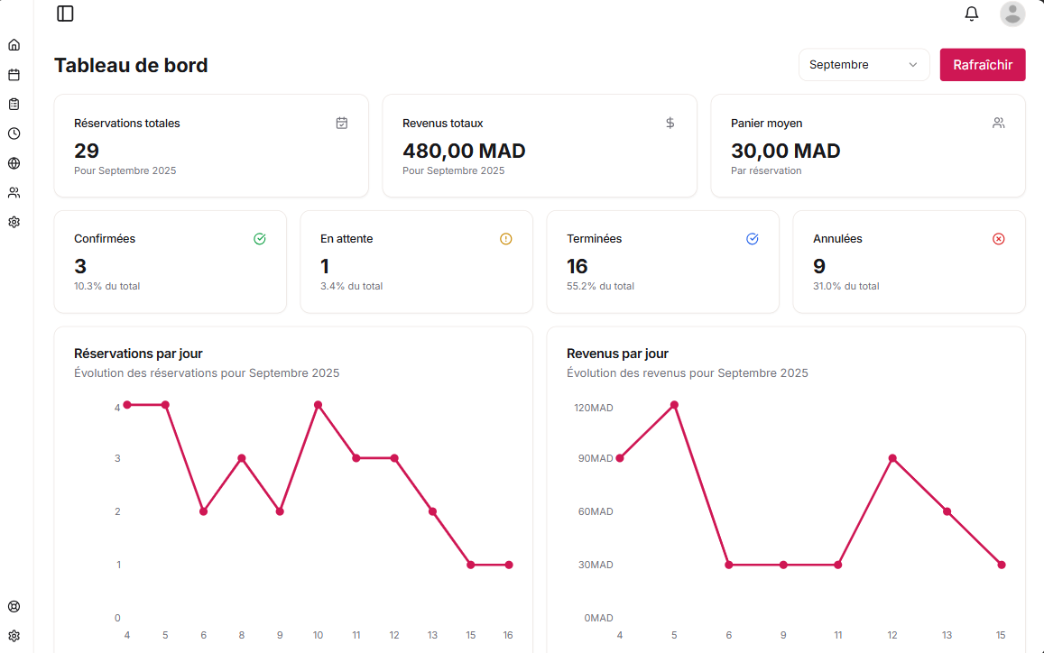 Accédez à un tableau de bord intuitif pour suivre vos revenus, analyser les tendances de votre salon et prendre des décisions éclairées.