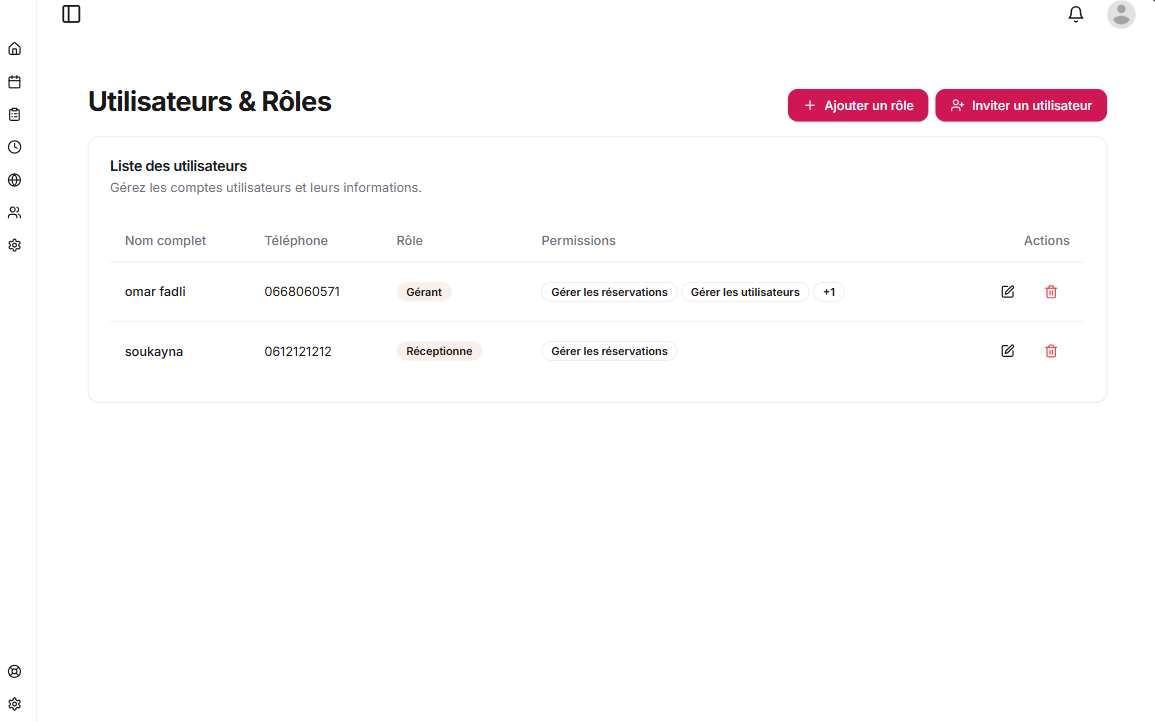 Gérez facilement les horaires de votre équipe, définissez des rôles et des permissions, et suivez les performances de chacun pour une efficacité maximale.